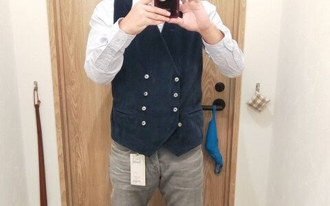 やっぱりコーデュロイでダブルのジレは難しいわ