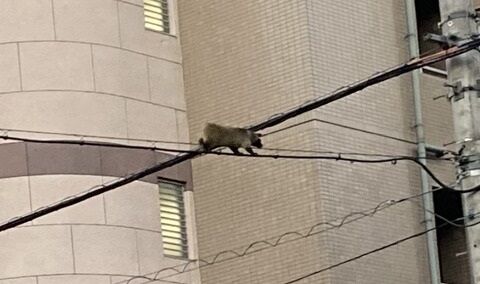 【悲報】タヌキさん、電線の上を歩いてしまう